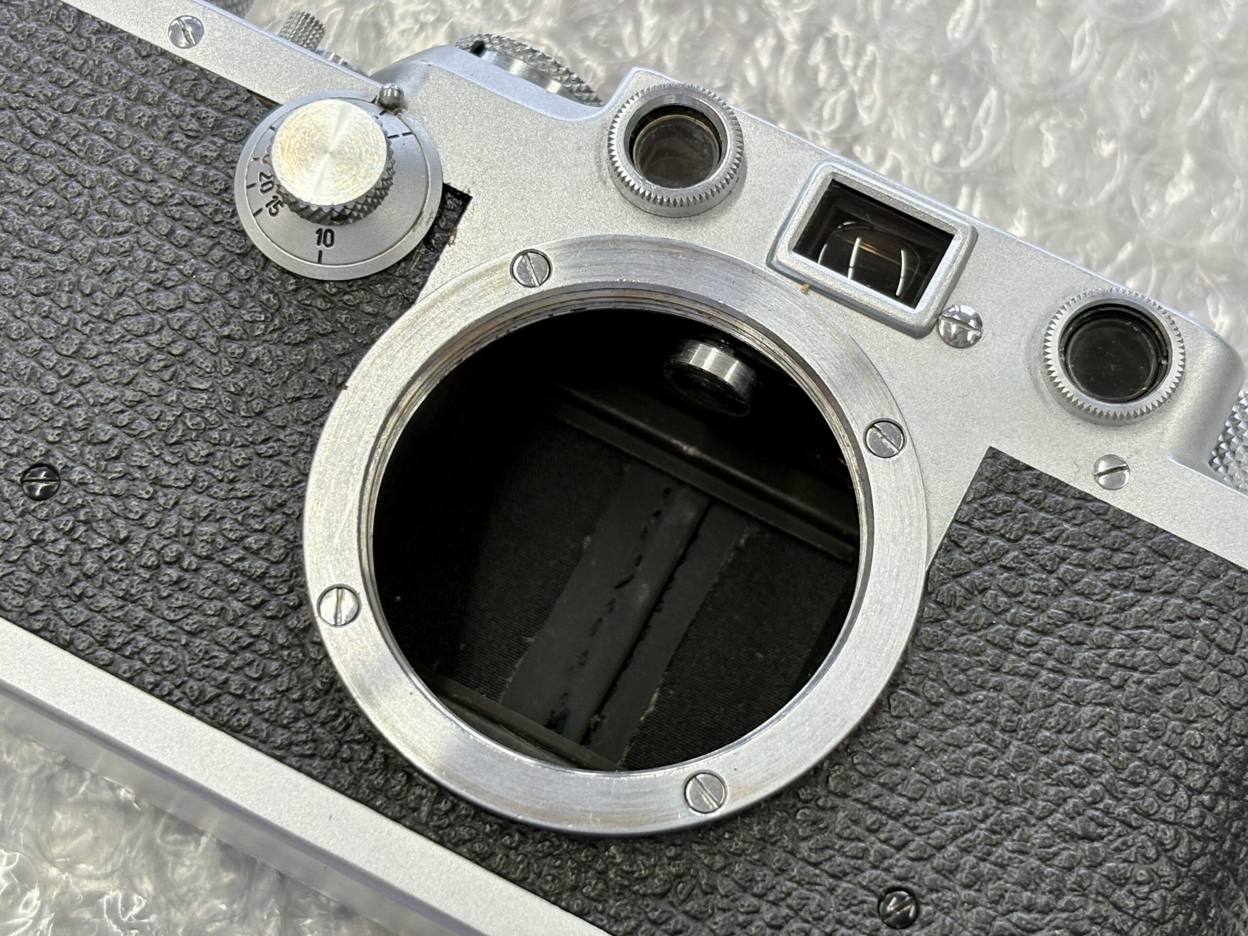 ライカは戦後もⅢCを生産しますが、戦後すぐの頃は流石のライカでも物資不足なのか?メッキの状態などあまり良くない物が多く残ってますね。
