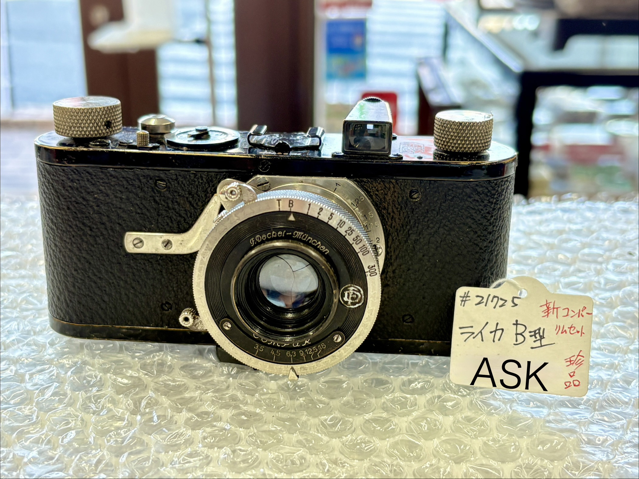 で、苦肉の策でコンパーシャッターを取り付けたのがライカB型です!操作性も面倒ですし当時でもあまり売れずに生産台数は新旧合計で1700台ほどで〜希少なコレクターさん向けカメラとなってますね。すごく高価なカメラです。特に初期のダイヤルセット式のコンパー付きB型はすごく高いですね。